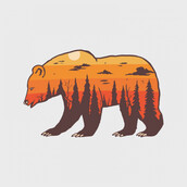 Bear Forest is a vintage illustration that is suitable for apparel or merchandise about nature, outdoors, forest, national park, adventure, wildlife, animal, bear, wild, national park, travel, wanderlust.