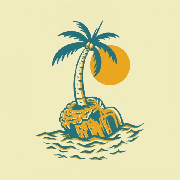 Beer Island is a vintage illustration that is suitable for apparel or merchandise about nature, island, beach, sea, ocean, summer, holiday, vacation, travel, beer, drink, beverage, alcohol.