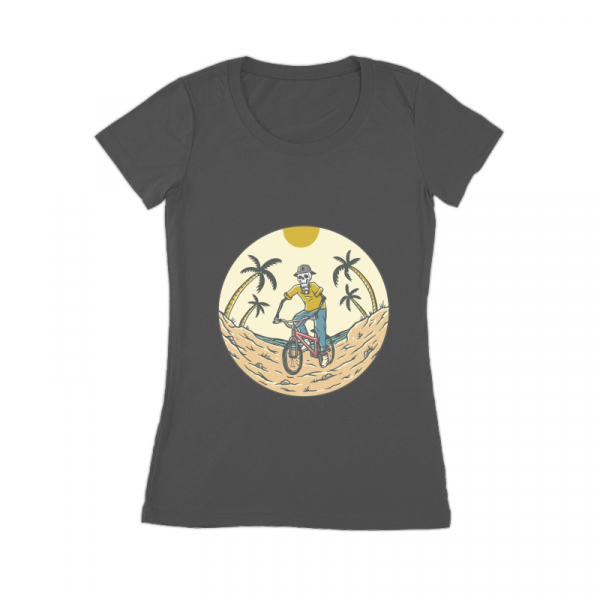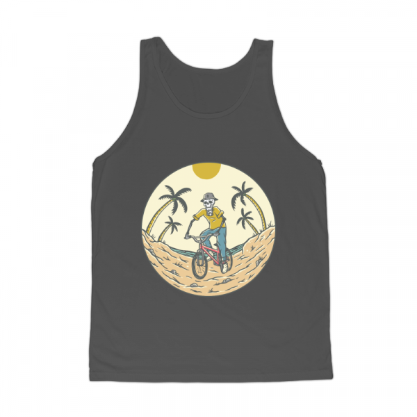 Bike to the Beach is a vintage illustration that is suitable for apparel or merchandise about nature, outdoors, summer, vacation, holiday, beach, holiday, bicycle, bike, sport, skull, skeleton, horror, biker, halloween, sea, ocean.
