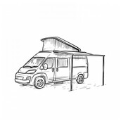 This illustration captures the adventurous essence of life on the road, showcasing a recreational vehicle as a symbol of freedom, exploration, and leisure. Hand-drawn in detailed black and white line art, it evokes the joy of travel, camping, and outdoor living — a mobile home that blends comfort with the spirit of adventure. The design celebrates the charm of open highways, wild landscapes, and the simple pleasures of nature, embodying a sense of happiness, relaxation, and discovery. With its artistic craftsmanship and nostalgic style, this piece transforms the humble camper into an icon of wanderlust and creative expression.