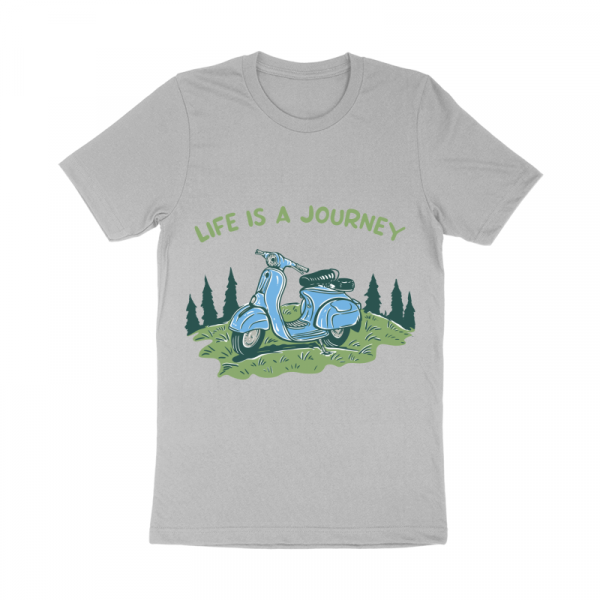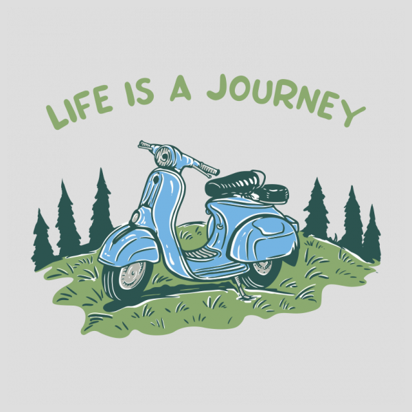 Classic Scooter, Life is a Journey is a vintage illustration that is suitable for apparel or merchandise about nature, outdoors, adventure, motorcycle, scooter, transportation, classic, journey.