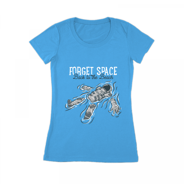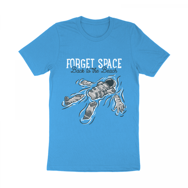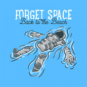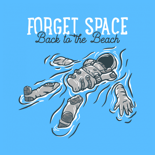 Forget Space Back to the Beach is a vintage handdrawn illustration that is suitable for apparel or merchandise about beach, sea, ocean, tropical, summer, vacation, holiday, swimming, space, ufo, alien, nasa, astronaut, galaxy, planet, universe, rocket, spaceman.