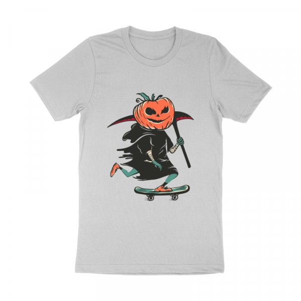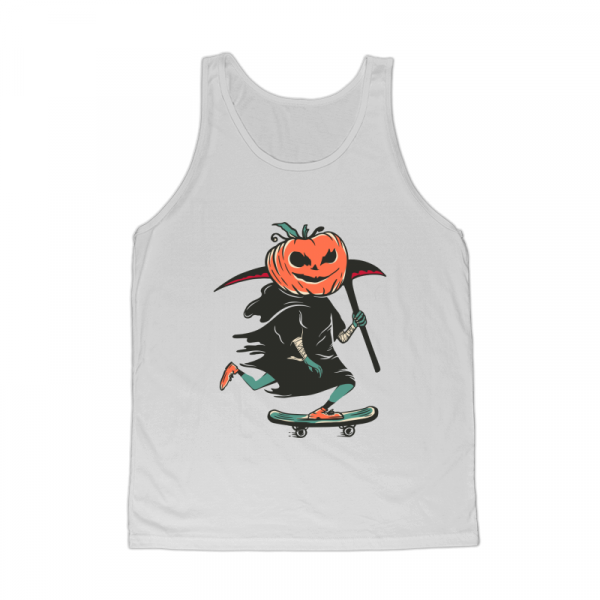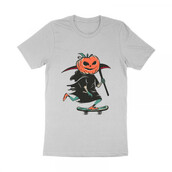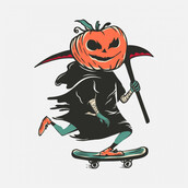 Halloween Grim Reaper Skateboarding is a vintage illustration that is suitable for t-shirts, jackets, or merchandise with the theme of halloween, skull, horror, skeleton, gothic, trick or treat, grim reaper, reaper, zombie, skateboard, pumpkin, ghost, scary, lantern, skate.