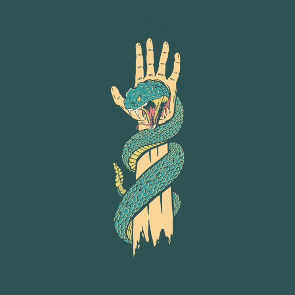 Hand of Snake is a vintage illustration that is suitable for t-shirts, jackets, or merchandise with the theme of snake, animal, wild, wildlife, reptile, nature, serpent, viper, dangerous, skin, poison, predator, art, python, cobra.