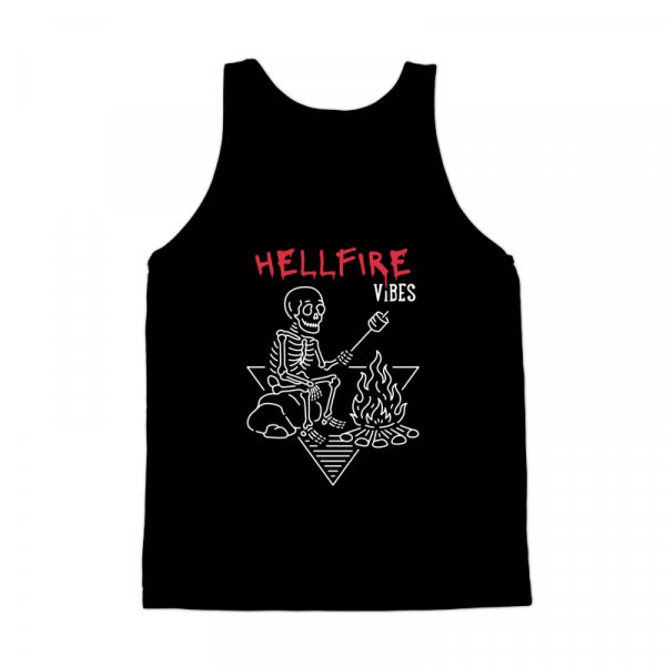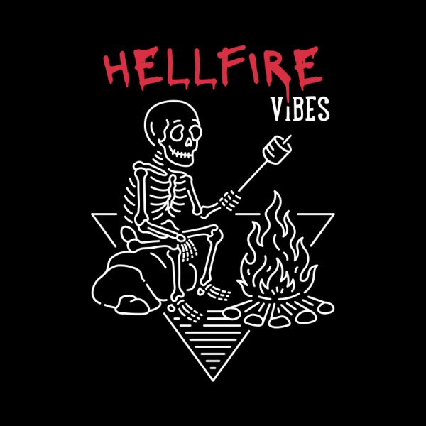 Hellfire Vibes is a monoline illustration that is suitable for apparel or merchandise about skull, skeleton, horror, halloween, trick or treat, death, gothic, ghost, grim reaper, outdoor, adventure, holiday, travel, backpacker, camping.