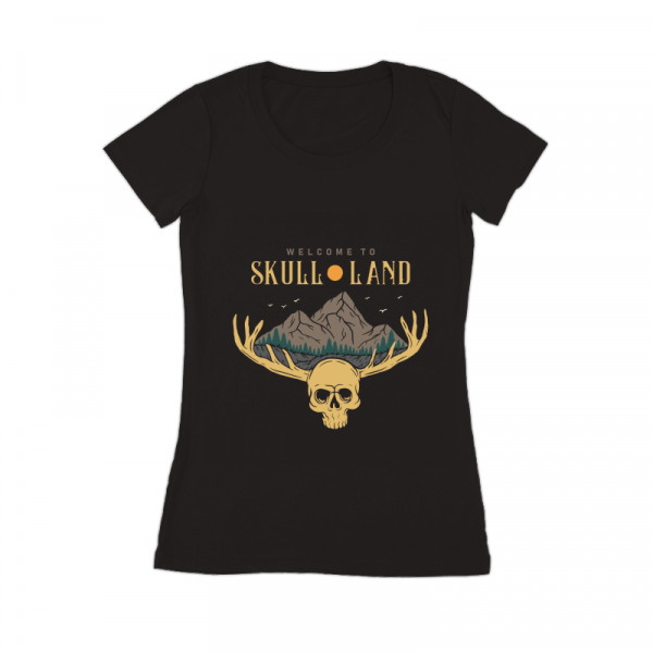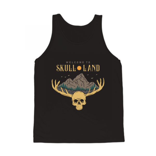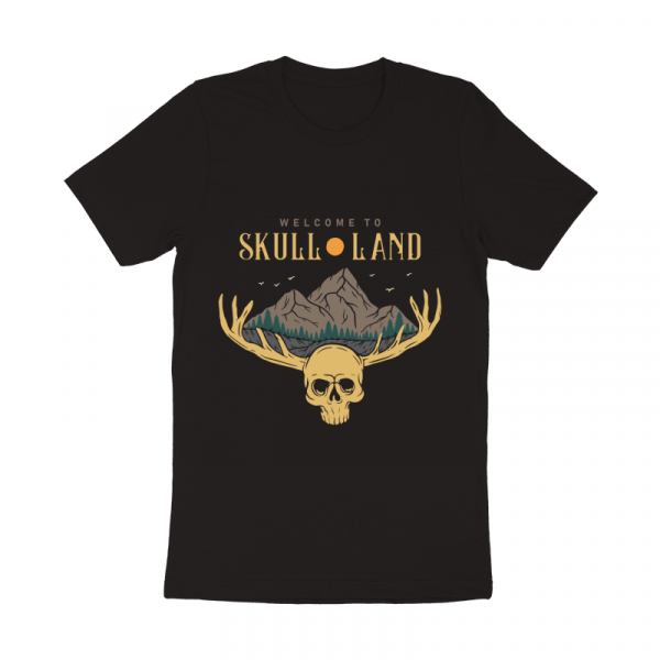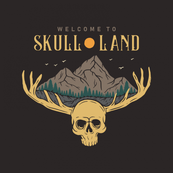 Horror Skull Land is a vintage illustration that is suitable for apparel or merchandise about nature, outdoors, adventure, paradise, mountain, wildlife, skull, horror, halloween, skeleton.