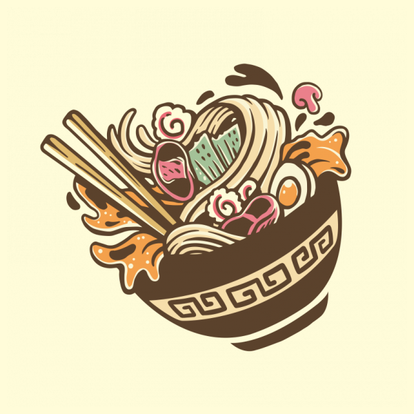 Japanese Ramen Noodle is a vintage illustration that is suitable for apparel or merchandise about ramen, noodles, ramen noodles, food, japanese, udon, ramen bowl, traditional,pasta, cuisine, spaghetti.