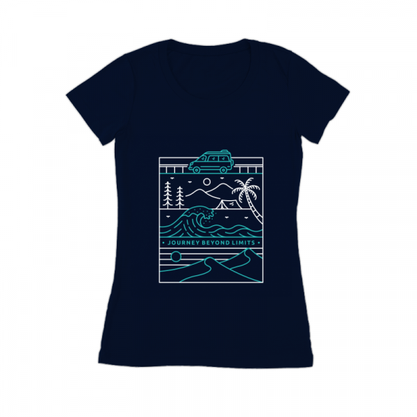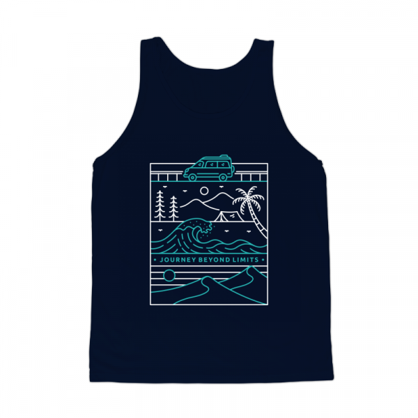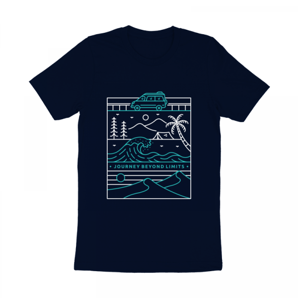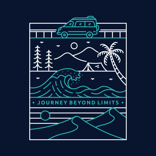 Journey Beyond Limits 3 is a monoline illustration that is suitable for apparel or merchandise about summer, vacation, holiday, beach, ocean, surfing, van, camper van, camping, nature, outdoor, mountain, national park, adventure, travel.