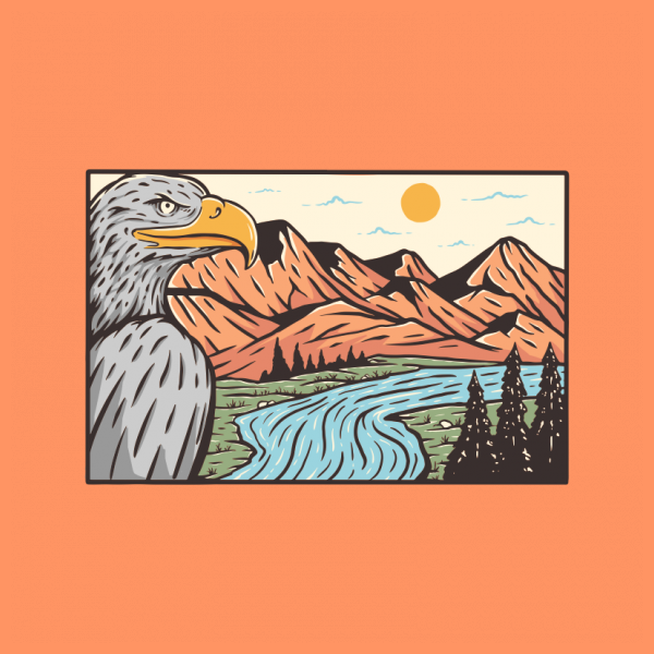 Keep Nature Wild is a vintage illustration that is suitable for apparel or merchandise about nature, outdoors, wild, wildlife, bird, animal, eagle, predator, adventure, mountain, national park.