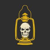 Lantern Skull Halloween is a vintage illustration that is suitable for apparel or merchandise about skull, skeleton, horror, halloween, scary, spooky, dead, death, trick or treat, zombie, monster, lantern.