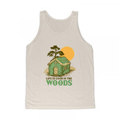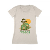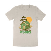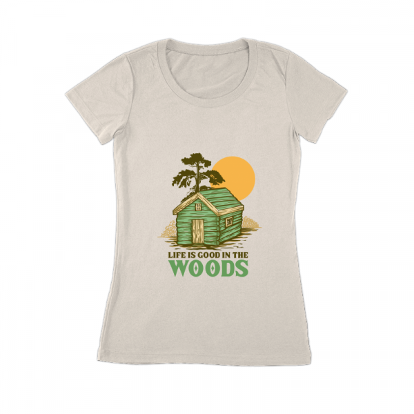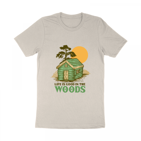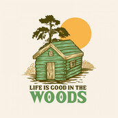 Life is Good in The Woods is a vintage illustration that is suitable for t-shirts, jackets, or merchandise with the theme of forest, camping, nature, outdoors, campfire, bonfire, adventure, hiking, mountain, national park, wildlife, house, woods, wanderlust, vintage.
