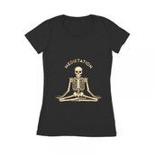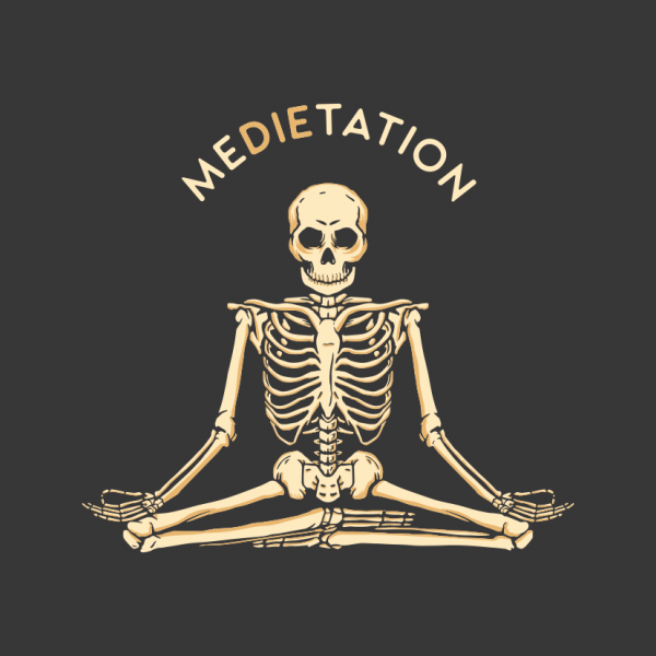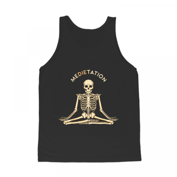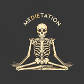 Medietation Skull is a vintage illustration that is suitable for t-shirts, jackets, or merchandise with the theme of skull, skeleton, halloween, horror, scary, pumpkin, bone, zombie, gym, trick or treat, meditation, yoga, sport, fitness, workout.