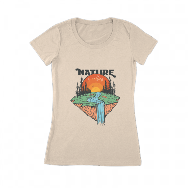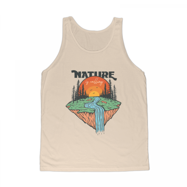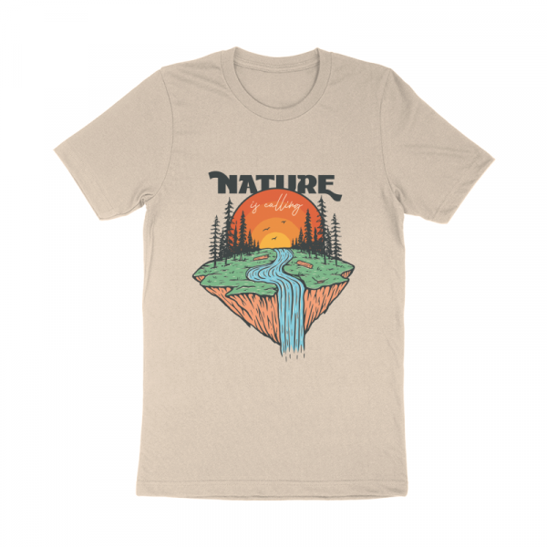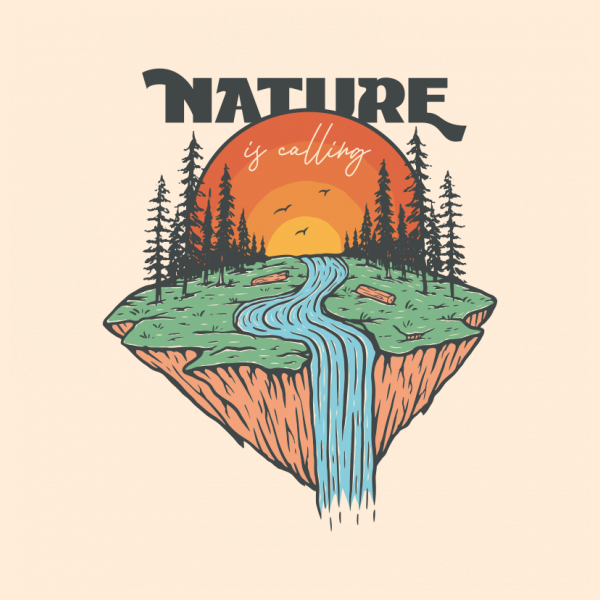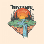 Nature is Calling is a vintage illustration that is suitable for apparel or merchandise about nature, outdoors, adventure, mountain, paradise, falls, national park, summer, tropical, vacation, holiday, waterfall.