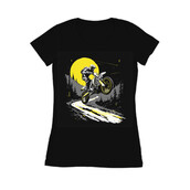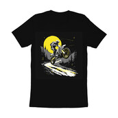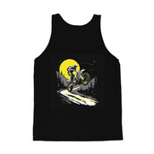 This striking design captures the thrill of motocross riding against a dramatic nightscape. A rider, clad in full gear, executes a wheelie on a dirt bike, silhouetted against a large, radiant moon. The artwork employs a limited color palette of black, white, and yellow to create a high-contrast, graphic style. The background features stylized trees and a winding dirt path, adding depth and a sense of adventure. The design balances realism with artistic interpretation, making it visually appealing and suitable for a variety of applications. The overall composition conveys energy, freedom, and the excitement of off-road riding.