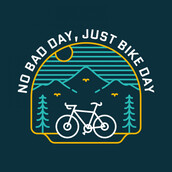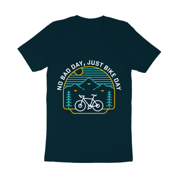 No Bad Day Just Bike Day 1 is a monoline illustration that is suitable for apparel or merchandise about nature, outdoors, mountain, holiday, bike, biker, bicycle, transportation, sport, travel, cycle, downhill, mountain bike, trip, adventure.