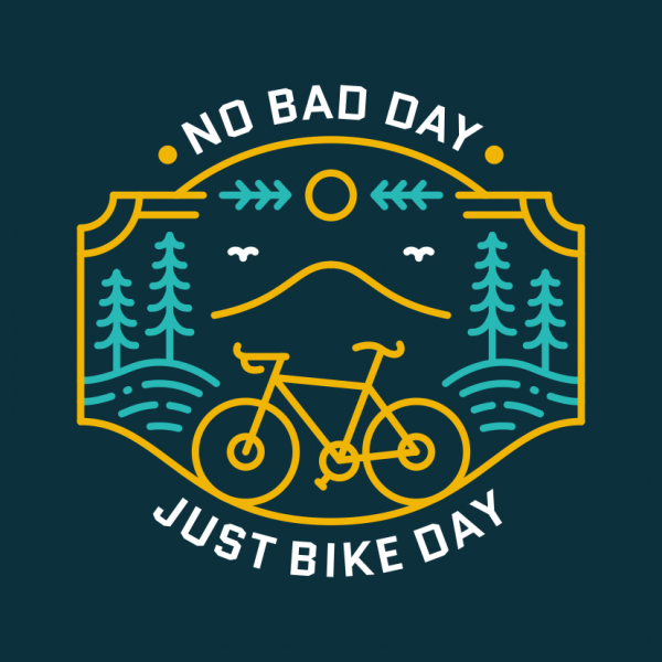 No Bad Day Just Bike Day 3 is a monoline illustration that is suitable for apparel or merchandise about nature, outdoors, mountain, holiday, bike, biker, bicycle, transportation, sport, travel, cycle, downhill, mountain bike, trip, adventure.