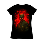 Designers could use this image for various purposes, including creating striking visuals for horror-themed products, gaming assets, or tattoo designs. The intricate details and vibrant colors make it ideal for posters, apparel, and digital art. Its unique blend of Japanese culture and dark fantasy can appeal to a wide audience seeking edgy and captivating designs.