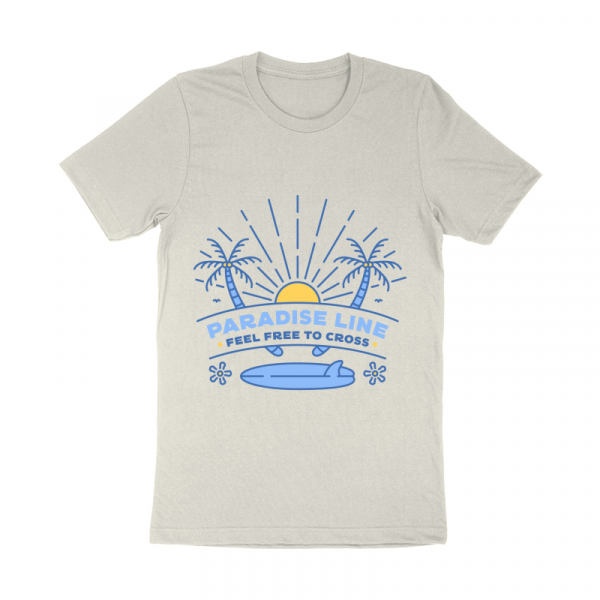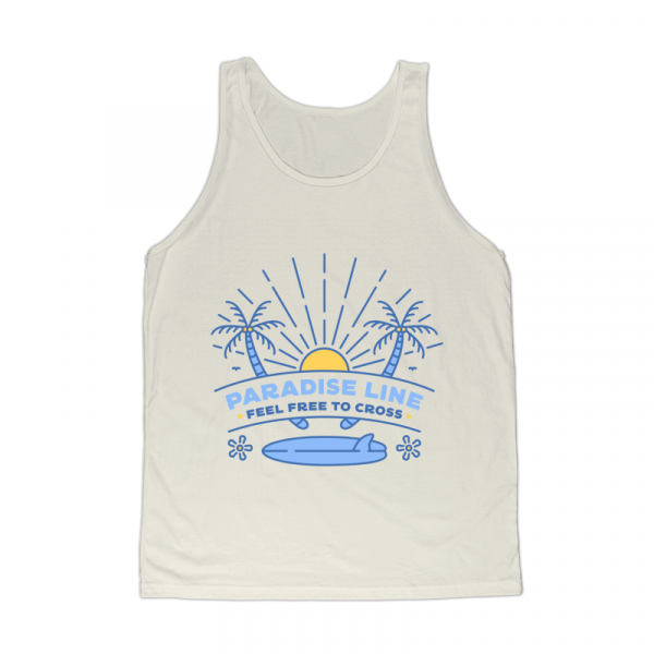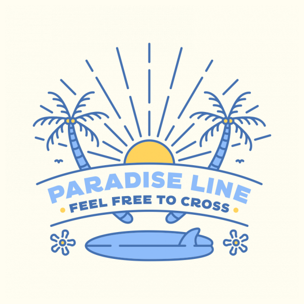 Paradise Line 1 is a monoline illustration that is suitable for apparel or merchandise about summer, vacation, holiday, beach, surfing, surfboard, waves, surfer, sport, travel, sea, tropical, good vibes, surf, hawaii.