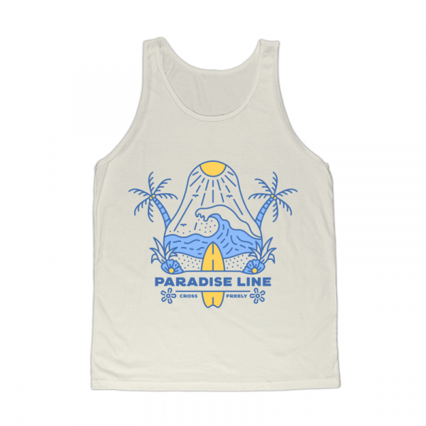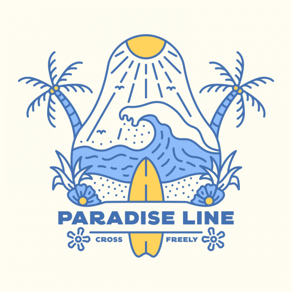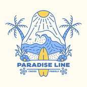 Paradise Line 2 is a monoline illustration that is suitable for apparel or merchandise about summer, vacation, holiday, beach, surfing, surfboard, waves, surfer, sport, travel, sea, tropical, good vibes, surf, hawaii.
