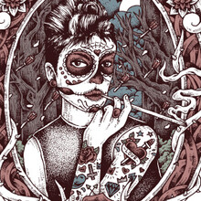 Rahadil Putra Hermana a.k.a Bodilpunk is an Indonesian freelance Graphic Designer and Illustrator for flyer, band merchandise, clothing and many more. He has a very distinct style that combines geometry with characters and detailed textures to create an intricate work full of punk rock vibes.