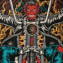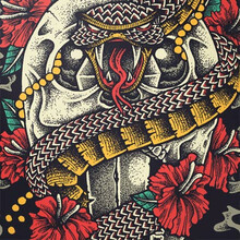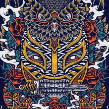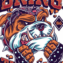 Rahadil Putra Hermana a.k.a Bodilpunk is an Indonesian freelance Graphic Designer and Illustrator for flyer, band merchandise, clothing and many more. He has a very distinct style that combines geometry with characters and detailed textures to create an intricate work full of punk rock vibes.