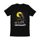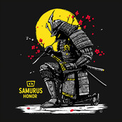 Designers can use this striking samurai illustration for a variety of projects, including t-shirt designs, posters, and digital artwork. The bold graphic style and strong thematic elements make it suitable for apparel, branding, and promotional materials. The design's cultural references and artistic execution can appeal to a wide audience.