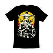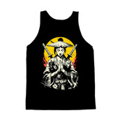 Designers could use this image for a variety of projects, including t-shirt designs, posters, and digital art. The strong visual impact and cultural references make it suitable for apparel, gaming-related graphics, or even as a logo for a martial arts studio. The vector format allows for easy customization and scalability.