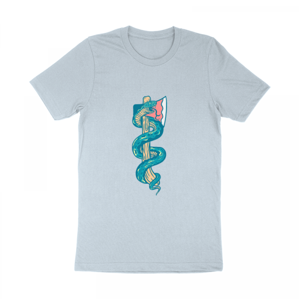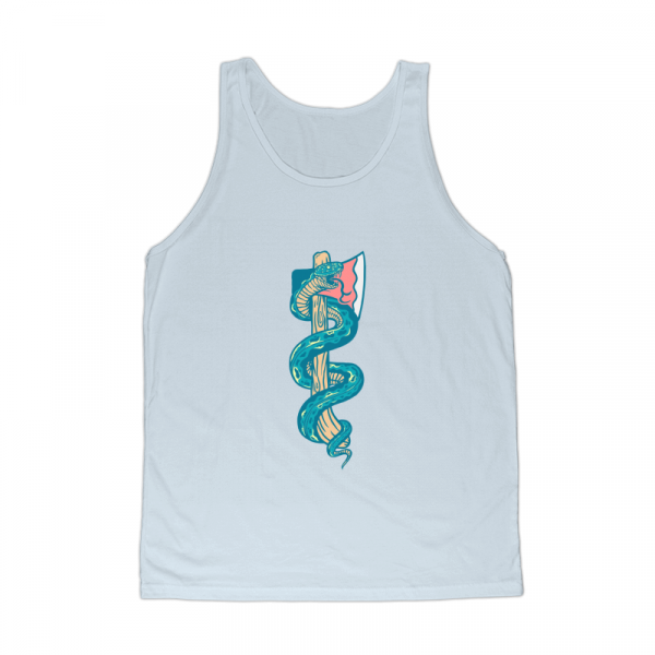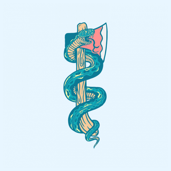 Snake on The Ax is a vintage illustration that is suitable for t-shirts, jackets, or merchandise with the theme of sword, warrior, armor, ax, ancient, axe, knight, dark, scandinavian, snake, animal, wildlife, reptile, viper, nature.