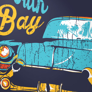 South Bay California digital artwork template in vector format, featuring detailed sexy pin-up girl now available for Adobe Illustrator, Adobe Photoshop and Corel Draw and can be used for digital printing and screenprinting .
