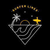 Surfer Lines is a monoline illustration that is suitable for apparel or merchandise about summer, vacation, holiday, travel, beach, sea, ocean, waves, surfing, tropical, surfer, surfboard, sunset, nature, sport.