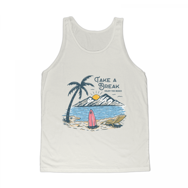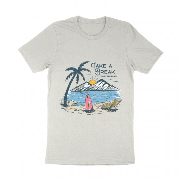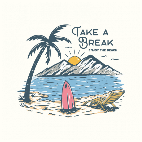 Take a Break, Enjoy The Beach is a vintage illustration that is suitable for apparel or merchandise about summer, vacation, holiday, travel, nature, outdoors, tropical, mountain, beach, national park, sea, ocean, camping.