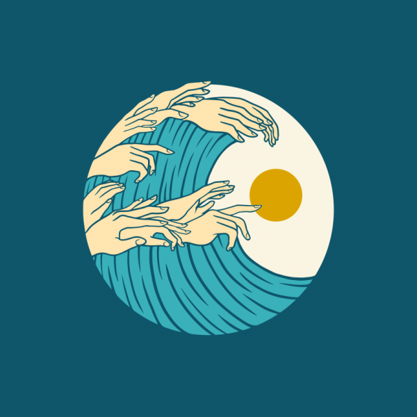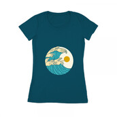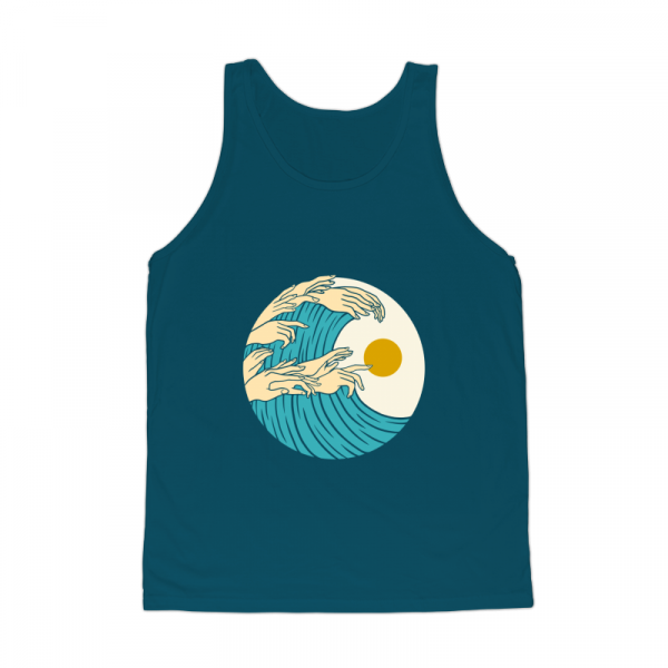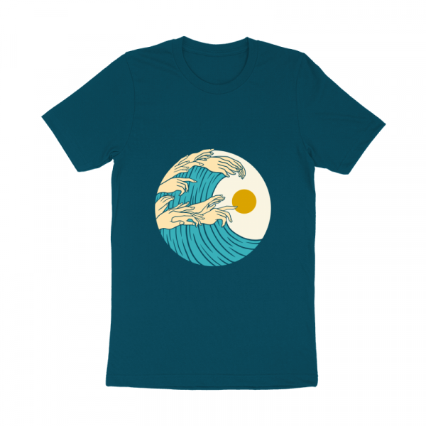 The Great Wave off Hand is a vintage illustration that is suitable for apparel or merchandise about summer, vacation, holiday, travel, nature, outdoors, tropical, mountain, beach, national park, sea, ocean, wave, surfing.