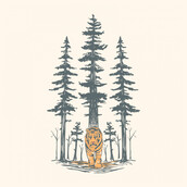 Tiger Woods is a vintage illustration that is suitable for apparel or merchandise about nature, outdoors, wild, wildlife, forest, animal, tiger, lion, trees, jungle, adventure, woods, redwood, national park.