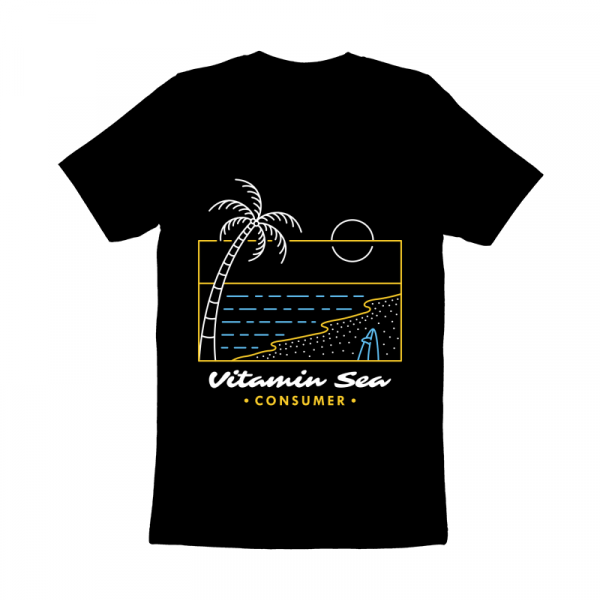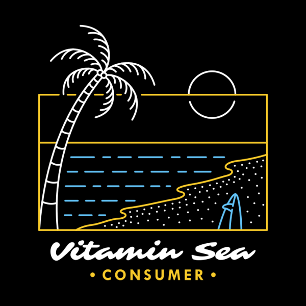 Vitamin Sea Consumer 2 is a monoline illustration that is suitable for apparel or merchandise about summer, vacation, holiday, beach, surfing, surfboard, waves, surfer, sport, travel, sea, tropical, good vibes, surf, hawaii.