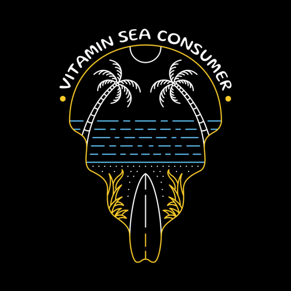 Vitamin Sea Consumer 3 is a monoline illustration that is suitable for apparel or merchandise about summer, vacation, holiday, beach, surfing, surfboard, waves, surfer, sport, travel, sea, tropical, good vibes, surf, hawaii.