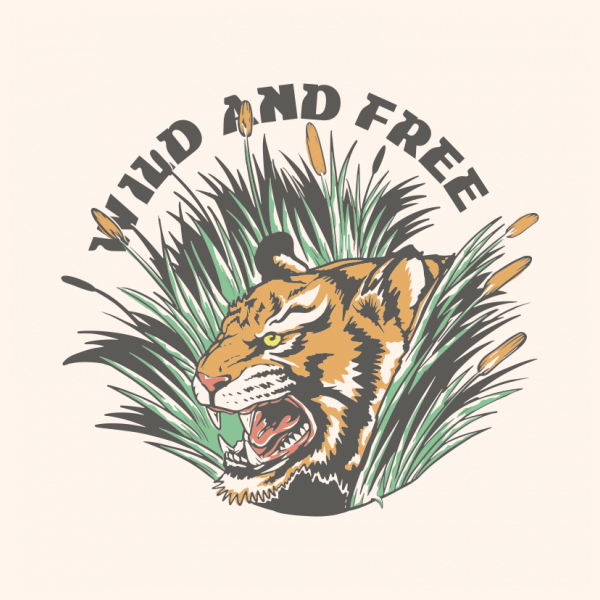 Wild and Free Tiger is a vintage illustration that is suitable for apparel or merchandise about nature, outdoors, wild, wildlife, animal, forest, woods, jungle, tiger, lion, hunter, animals, zoo.