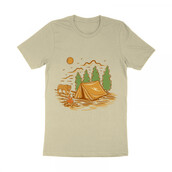 Wild Camping is a vintage illustration that is suitable for t-shirts, jackets, or merchandise with the theme of camping, campfire, nature, outdoors, tent, adventure, wildlife, animal, tiger, lion, wild, lake, national park, travel, wanderlust.
