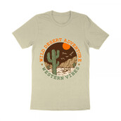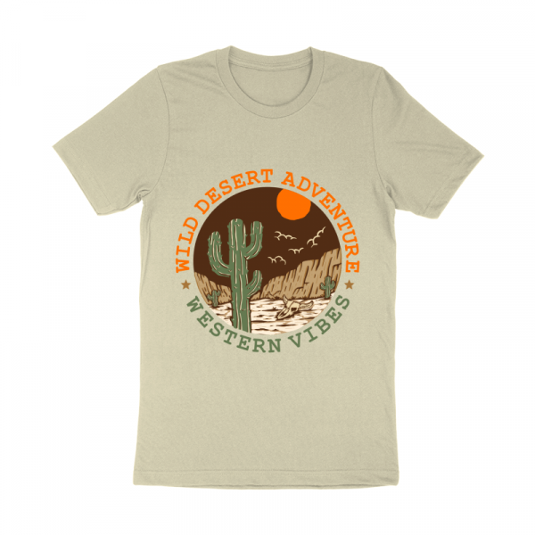 Wild Desert Adventure is a vintage illustration that is suitable for t-shirts, jackets, or merchandise with the theme of nature, desert, cactus, sahara, succulent, canyon, outdoors, adventure, cowboy, west, trip, roadtrip, western, wildwest, arizona.