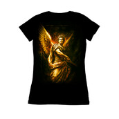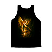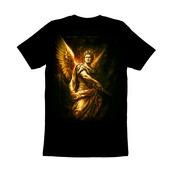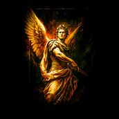 This striking design depicts a Roman Caesar, reimagined with majestic wings. The figure is rendered in a painterly style, reminiscent of classical sculptures brought to life with dynamic brushstrokes and a warm, golden palette. He wears a laurel wreath and ornate armor, holding a sword, symbolizing both power and protection. The wings add a fantastical element, elevating the Caesar to a godlike status. The background features fiery hues, suggesting a divine or otherworldly realm. The overall effect is powerful, regal, and slightly surreal, blending historical and mythical elements.